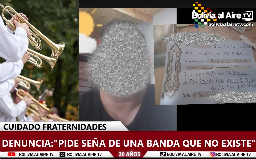 Se trata de la señora Pamela Flores, pasante de la fiesta Virgen de Urkupiña quien en contacto con Bolivia Al Aire TV denunció públicamente que el individuo de nombre Cristian B. Le cobró $800.000 pesos parte de una seña por el servicio de la Banda «Super Sonora» para el mes de agosto, pero nunca aparecieron.